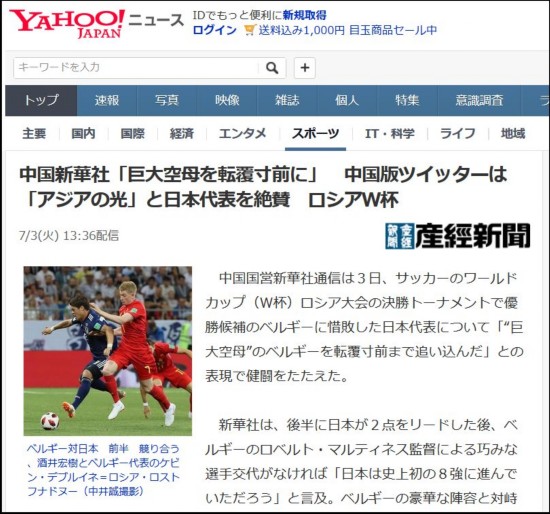 原标题:和日本一起征战世界杯?网友:下下下下下下下次吧 文 观察者网 郭光昊 虽然日本队已经遗憾止步于世界杯八强之外,但这几天日本人最常用雅虎新闻站上,一条体育新闻却洋溢着别样的气氛。 这条新闻标题为“中国新华社‘巨大航母差点翻船’ 中国版推特也称赞日本队‘亚洲之光’”。 《产经新闻》的这篇报道注意到了3日新华社发布的一篇球评。 那篇球评中有这么一段话: 面对实力、名气皆不如自己的日本队,在顿河上航行的“巨型航母”比利时队几乎翻船,卢卡库们的世界杯之梦差一点就被埋葬在罗斯托夫体育场。 报道还提及,新华社其他多篇评论如实反映了日本队这4年中的进步。 报道最后还引用了一位不具名的中国网友的话: 我多少有点理解日本文化中总是宣扬的“魂”是什么了……日本队堪称“亚洲之光”。我们也应该尽快找到属于我们自己的“魂”。 对于中国球迷的肯定,日本网友也不吝赞美之词。本次选择的评论都是点赞数前15中的评论,大部分人都对中国球迷慷慨赞赏日本队表示感谢。 还有网友感受到了中国人对于足球这项运动特有的“执念”。 在其中还有一条显得有点特别: 这句日本网友的鼓励,对于中国球迷而言可以说是扎透心了。 虽然以中国足球的水平“下次”是不太可能了,但梦想也总是要有的。 |