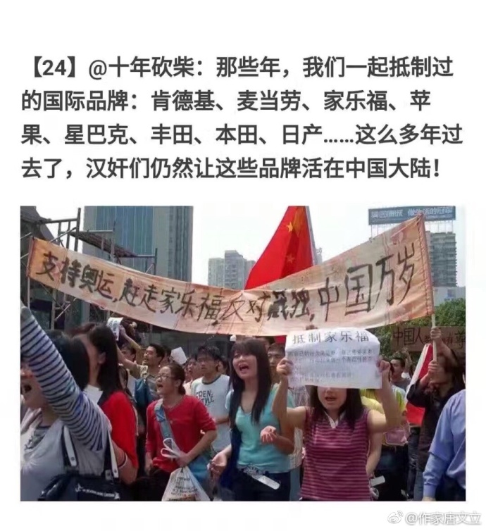 说到这,辛东彬对着镜头哈哈一笑,就像《Super Star K5》中的作秀,装模作样,激情四射。 等那一阵激动劲过了,就好像什么事都没发生过。我们只须打打折,他们就会像捡了大便宜似的蜂拥而来。 前几年抵制日本货、菲律宾的水果,结果那阵风过了后他们的销量猛增。