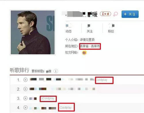 就算自己信息保密再好,还是可以通过访客记录和点赞信息,得到学校、居住地、年龄、习惯、兴趣等信息。 随意浏览一下,发现一大半相册照片都是关于卷福,常常晒手帐,晒电影票根,参与字幕组翻译工作。 到这一步时,这位×暖同学的身份特征开始清晰了: 性别......... √ 手机型号......... √ 偶像卷福(后面有用)......... √ 爱好......... √ 手机型号......... √ 微信也是相同的道理。 5:接下来,结合上面得到的信息,试试在其他APP上找到这个人吧。 为了便于展示,我选了几个在大学生群体中比较流行的社区:某博、某云音乐、某瓣。