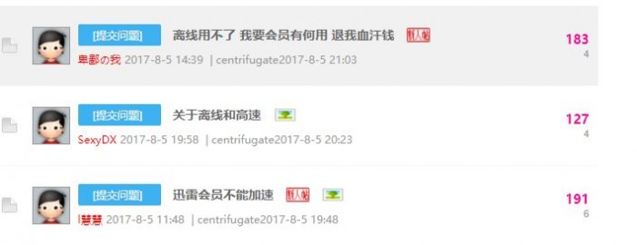 近日网友使用新版迅雷9进行下载,不少资源的高速通道和离线下载功能都已失效。 刚去迅雷官方论坛看了一眼,好像确有此事,骂声一片。 据之前的公告称,离线下载和高速通道已经随着迅雷7软件一起下线了