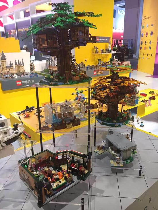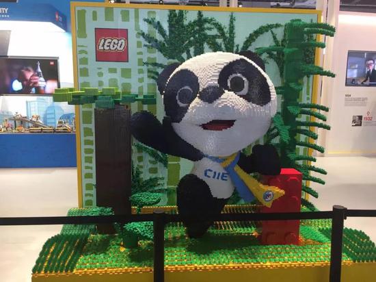 用超过21.1万块乐高积木颗粒拼砌的3D进博会吉祥物“进宝”在第二届进博会6.1号馆正式亮相。