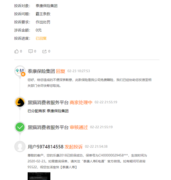 近日,黑猫投诉河北站收到网友投诉泰康保险集团:泰康在我不知情的情况下给我定了保险。