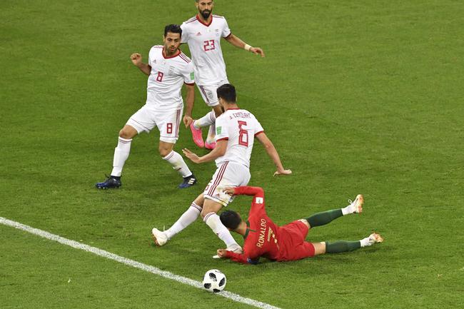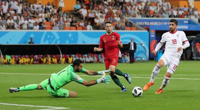 夸雷斯马与C罗庆祝 北京时间6月26日2时(俄罗斯当地时间25日21时),世界杯B组末轮在萨兰斯克开始1场较量,葡萄牙1比1被伊朗逼平,积5分排名小组第二出线。夸雷斯马世界波打进世界杯处子球。下半时,C罗制造点球并主罚却被扑出。补时阶段,安萨里法德点球扳平,葡萄牙因而从小组头名跌至第二。本届世界杯已判20个点球,打破了单届世界杯点球纪录。 C罗赛前热身 赛前葡萄牙与西班牙同积4分,伊朗1分之差位居小组第三。葡萄牙世界杯对阵亚洲球队3胜1平(2002年负东道主韩国)。桑托斯更换3名首发。威廉·卡瓦略、 阿德里安·席尔瓦、安德烈-席尔瓦出场,顶替贝尔纳多·席尔瓦、穆蒂尼奥、格德斯。 奎罗斯与葡萄牙足协副主席科埃略寒暄 伊朗队世界杯小组赛第3场从未取胜(1平3负),同届世界杯小组赛取胜从未超过1场。世界杯对欧洲球队同样未尝胜绩(1平6负)。前葡萄牙主帅奎罗斯仅有1处调整,贾汉巴赫什顶替安萨里法德。伊朗与葡萄牙在世界杯有过1次交锋,2006年C罗打进世界杯处子球,帮助葡萄牙2比0胜出。 C罗任意球蹭人墙高出 开场不久,若昂-马里奥左侧外脚背垫传,C罗突入禁区左侧距门10米处斜射被贝兰万德没收。 贾汉巴赫什右路横传,阿米里后点禁区边缘左脚低射偏出。威廉·卡瓦略挑传禁区,埃扎托拉西凌空勾球解围不远,若昂-马里奥在门前16米处抽射,贝兰万德对埃扎托拉西非常不满,冲其大声吼叫,还推了他的胸口。 埃扎托拉西解围不远,受到门将贝兰万德训斥 夸雷斯马右路传中,贝兰万德出击没拿到球,险些送给对方机会。安德烈-席尔瓦被阿米里放倒,C罗右侧距门23米处任意球蹭人墙高出。雷扎埃安左侧距门25米处任意球则偏出近角。帕特里西奥出击扑救,头部受到贾汉巴赫什护腿板冲撞,接受治疗后坚持作战。贾汉巴赫什右路任意球传中,埃扎托拉西在门前10米处头球一蹭被帕特里西奥得到。 帕特里西奥出击扑救,头部受到贾汉巴赫什冲撞 C罗接应丰特横传,在门前30米处轰门被贝兰万德得到。葡萄牙第45分钟取得领先!夸雷斯马右路内切与阿德里安·席尔瓦踢墙配合,阿德里安·席尔瓦脚后跟传球,夸雷斯马禁区前沿外脚背打出弧线球绕过门将贝兰万德入远角,1比0。他成为2014年6月22日瓦雷拉(对美国)之后首位世界杯上进球的C罗以外的葡萄牙队员,其间C罗打进5球,还有个乌龙。夸雷斯马也成为2006年伊朗队戈尔穆哈马迪(35岁84天对墨西哥进球)以来最年长的世界杯处子球进球者(34岁272天)。本届世界杯已有8个禁区外进球,而上届总共只有7个禁区外进球。 夸雷斯马破门瞬间 上半时葡萄牙控球率达到76%,而在另一场地,西班牙与摩洛哥战为1比1平,葡萄牙领先西班牙2分。下半时开始6分钟,C罗突至禁区边缘被避开普拉利甘吉伸腿拦截,与回防的埃扎托拉西身体接触倒地,巴拉圭主裁判卡塞雷斯没有立即判罚,到场边观看VAR提供的回放后吹罚点球!哈杰萨菲提出抗议,被黄牌警告。奎罗斯在场边也情绪激动。C罗亲自操刀推射右下角,但角度欠佳被贝兰万德扑出! C罗错过了射手榜上追平凯恩的机会。这是葡萄牙在世界杯上8个点球首次射失(尤西比奥4点;C罗2点;西芒1点,不计点球战),C罗在国家队主罚14个点球,射失6个(42%),是葡萄牙队射失点球最多的球员(菲戈射失4个位居第二)。贝兰万德则成为川口能活(2006年扑出斯尔纳点球;2010年扑出托马森点球)之后,第2位在世界杯上扑出点球的亚洲门将。本届杯赛前36场判了19个点球,打破了单届世界杯点球纪录(1990年、1998年、2002年18个点球),其中有5个没能罚进。 若昂-马里奥左路传球,C罗内切距门18米处低射偏出远门柱。 贝尔纳多·席尔瓦换下夸雷斯马;戈多斯换下贾汉巴赫什。伊朗中场长传,阿兹蒙力扛后卫做球,戈多斯在门前18米处低射偏出左门柱。 主裁判卡塞雷斯到场边口头警告屡次发泄不满的奎罗斯。安萨里法德换下埃扎托拉西。C罗拼抢时手臂接触身前的普拉利甘吉侧脸颊,伊朗队员提出抗议,主裁判卡塞雷斯再次求助于VAR回放,回场后向C罗亮出了黄牌,C罗无奈微笑。 此时西班牙1比2落后!这让伊朗人看到了一线生机。伤停补时长达6分钟。补时第1分钟,主裁判卡塞雷斯再次动用VAR,这次是塞德里克在禁区内与阿兹蒙争顶时疑似抬起手臂触球,卡塞雷斯场边观看回放后吹罚点球!安萨里法德操刀推进右上角,1比1!不过此时西班牙也已经扳平比分,与葡萄牙同积5分,并因为进球数的优势登上榜首!伊朗4分位居第三。 伊朗甚至有机会反超比分。补射第4分钟,伊朗后场长传,阿兹蒙头球摆渡,戈多斯停球距门18米处低射被挡变线,塔雷米左侧距门8米处左脚打在边网上!如果这球能进,本组形势将发生翻转,伊朗将积6分获得头名,而葡萄牙将跌至第三出局!好在C罗和队友最终避免了绝杀,伊朗则功亏一篑,赛后奎罗斯进场安慰队员。 葡萄牙(4-4-2):1-帕特里西奥/21-塞德里克,3-佩佩,6-丰特,5-格雷罗/20-夸雷斯马(70'11-贝尔纳多·席尔瓦),14-威廉·卡瓦略,23-阿德里安·席尔瓦,10-若昂-马里奥/7-C罗,9-安德烈-席尔瓦 伊朗(4-2-3-1):1-贝兰万德/23-雷扎埃安,8-普拉利甘吉,19-马吉德·侯赛尼,3-哈杰萨菲/6-埃扎托拉西(76'10-安萨里法德),9-易卜拉希米/18-贾汉巴赫什(70'14-戈多斯),11-阿米里,17-塔雷米/20-阿兹蒙 |
