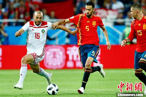 中新社记者 富田 摄"> 西班牙与摩洛哥之战,双方球员在拼抢。中新社记者 富田 摄 中新网6月26日电 俄罗斯世界杯B组小组赛今日凌晨打响收官之战,西班牙面对已经提前出局的摩洛哥并没能讨得什么便宜,两度在落后的情况下两度扳平,最终2:2与对手握手言和。西班牙1胜2平,凭借进球优势力压葡萄牙,以小组第一的身份出线。 西班牙世界杯开赛前临阵换帅,让不少评论都认为他们的整体战斗力将受到影响。不过世界杯首战,他们虽然遭遇到了强有力的考验,但仍然全身而退。面对有C罗领军的葡萄牙,西班牙曾经两度落后,但都顽强的将比分扳平。虽然凭借纳乔的远射破门反超比分,但临近终场时C罗直接任意球破门,让两队互取1分。 与伊朗队的小组赛次战,虽然西班牙场面占优,但面对对手积极的整体防守,长时间未能创造得分机会。直到下半场开场后不久,他们才凭借伊朗解围球直接踢在迭戈科斯塔身上变线入网的幸运球锁定胜局。随后伊朗通过一次任意球机会打入一球,但经过VAR确认越位在先进球无效。 中新社记者 富田 摄"> 比赛现场。中新社记者 富田 摄 摩洛哥实力不俗,世界排名第41位的他们多位球员在欧洲联赛效力。首轮面对伊朗,全场占据主动的他们却在补时阶段上演“乌龙自杀”0:1落败。次战葡萄牙开场不久,又被C罗机敏破门打入全场比赛唯一进球。这就导致了他们只被对手踢进一个球,却不得不提前一轮出局。 虽然小组出线前景光明,但西班牙队在确保晋级的基础上,如何避开A组乌拉圭、俄罗斯两支出线队中更强的对手,将是他们更多需要考虑的问题。而状态不错的迭戈·科斯塔在前两场比赛中已经攻入3球,如果他希望继续保持在射手榜上的竞争力,还需要斩获更多的进球。而摩洛哥人则渴望着打破“进球荒”。 这是两队第一次在世界杯的赛场上交手,但率先打破场上僵局的确是实力略逊一筹的摩洛哥。第14分钟拉莫斯和伊涅斯塔配合出现失误,布塔伊卜拿球后快速突进,面对出击的德赫亚打了一个穿裆破门得分。不过5分钟后西班牙队就扳平比分,伊涅斯塔带球突破多人后的底线倒三角回传,伊斯科爆射得分。 中新社记者 富田 摄"> 摩洛哥队在进攻。中新社记者 富田 摄 第25分钟摩洛哥再次获得破门良机,又是布塔伊卜接队友发出的界外球形成单刀,这次德赫亚发挥出色将射门挡出。补时阶段西班牙卷土重来,科斯塔接伊涅斯塔的横传铲射没踢正部位,皮球滑门而过。上半场西班牙打出了标准的传控足球,以70%的控球率掌控了全场主动权,摩洛哥队出现了9次犯规,吃到4张红牌。 双方易地再战,摩洛哥再次让前世界杯冠军队领教了自己的实力。第55分钟,阿姆拉巴特在大禁区外接到艾哈迈迪传球后抽射,皮球重重砸在西班牙队远端立柱上。6分钟后西班牙同样错失一个必进球机会,伊斯科接卡瓦哈尔传中近距离头球攻门,虽然摩洛哥门将对此无计可施,但后卫塞斯在门线上将球解围。紧接着皮克角球头球攻门,皮球擦着立柱稍稍偏出。 经过一番激烈的攻防后,两队体能都出现了不同程度的下降。第80分钟摩洛哥传中打在了皮克手上,但裁判考虑到没有扩大防区并未吹罚点球,摩洛哥队获得了全场比赛第一个角球,内斯里高高跃起头槌破门,帮助球队再次领先。 比分落后的西班牙随即展开大举进攻,并由阿斯帕斯在补时阶段攻入一球,裁判最初认定此球越位在先、进球无效。但经过VAR视频裁判回看后改判进球有效。最终双方2:2握手言和。(完) |
