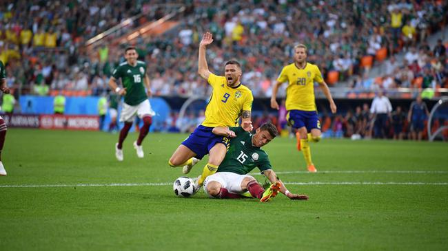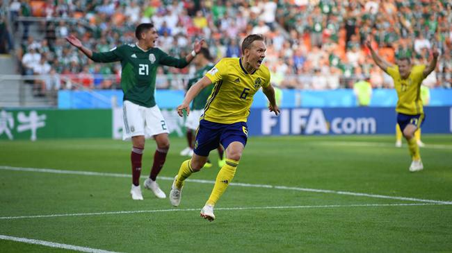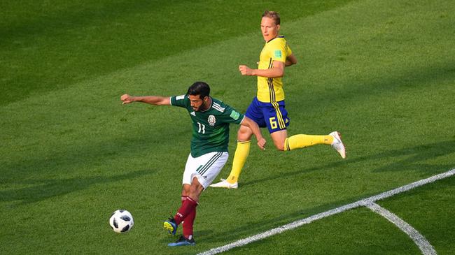 瑞典头名晋级 北京时间6月27日22:00(叶卡捷林堡当地时间19:00),2018年世界杯F组末轮一场比赛在叶卡捷林堡竞技场展开角逐,瑞典3比0完胜墨西哥,奥古斯丁松和格兰奎斯特进球,阿尔瓦雷斯自摆乌龙。瑞典获得小组头名,墨西哥小组第二出线。 墨西哥前2轮取胜暂居小组头名,瑞典曾在1958年世界杯击败墨西哥,近2次热身赛交锋也取得1胜1平保持不败。墨西哥近19个世界杯小组赛仅负2场,但这2场都来自于小组赛末轮。墨西哥继续排出相同的首发阵容,小豌豆领衔锋线。而瑞典也排出与对阵德国相同的首发阵容。 [抢足彩外挂:淘汰赛锦囊] 加利亚多15秒得黄牌 加利亚多开场仅15秒对托伊沃宁争顶时犯规被罚黄牌。第5分钟,奥乔亚禁区边缘摘下皮球被判在线外手球犯规,但回放显示皮球并未完全出界。福斯贝里小角度任意球直接射门被奥乔亚扑出。格兰奎斯特角球混战中远点头球摆渡,贝里小禁区左侧背身钩射偏出近角。 贝拉禁区边缘射偏 墨西哥首次机会出现在第17分钟,埃尔南德斯和洛萨诺连续传球,但贝拉禁区边缘的弧线球射门擦左侧立柱偏出。瑞典1分钟后还以颜色,卢斯蒂格右路传中,无人防守的福斯贝里10码处第一时间推射高出。拉尔森凌空蹬踏洛萨诺被黄牌警告。 裁判拒判墨西哥点球 第30分钟,瑞典球员投诉埃尔南德斯禁区内手球犯规,但裁判检视回放后拒绝判罚点球。瑞典主帅安德森在场边激烈抗议。1分钟后,卢斯蒂格角球混战中钩传门前,贝里小禁区边缘凌空捅射被奥乔亚托出横梁。克拉松传中,福斯贝里16码处凌空扫射打飞。埃尔南德斯分球,贝拉切入禁区右侧劲射偏出。伤停补时,贝里突入禁区左侧射门打在边网。 奥古斯丁松打破僵局 瑞典第50分钟打破僵局,贝里禁区右侧传中,克拉松12码处扫射打歪令皮球偏转,奥古斯丁松小禁区左侧斜射入网。瑞典在即时积分榜上跃升头名。瑞典持续施压,托伊沃宁传球,福斯贝里禁区边缘的射门稍稍高出。福斯贝里传球,奥古斯丁松禁区左侧弧线球射门同样高出。 莫雷诺铲球送点 格兰奎斯特射入点球 拉尔森受伤被斯文松换下。瑞典第62分钟扩大比分,贝里突入禁区右肋被莫雷诺铲倒,裁判果断判罚点球,格兰奎斯特主罚点球命中,2-0。落后的墨西哥加强反攻,贝拉开出角球,萨尔塞多头球攻门偏出。法比安任意球传中,埃尔南德斯12码处头球攻门同样偏出。 阿尔瓦雷斯自摆乌龙 瑞典第74分钟锁定胜局,替补出场的特林前点头球后蹭,阿尔瓦雷斯近距离在托伊沃宁紧逼下解围踢空,皮球打在他腿上反弹入左下角,3-0。第81分钟,科罗纳传中远点,埃尔南德斯禁区左侧小角度凌空扫射,贝拉近距离顶空门偏出。 瑞典3球领先已让比赛再无悬念,看台上的墨西哥球迷纷纷掏出手机收看德国同韩国的赛况,韩国在伤停补时进球让墨西哥球迷欣喜若狂。墨西哥球员齐聚球场内等待最后结果。最终德国爆冷输球,墨西哥输球仍获得小组第二晋级。 墨西哥球迷庆祝晋级 墨西哥(4-3-3):13-奥乔亚;21-阿尔瓦雷斯,3-萨尔塞多,15-莫雷诺,23-加利亚多(65',8-法比安);7-拉云,16-埃克托-埃雷拉,18-瓜尔达多(75',17-科罗纳);11-贝拉,14-埃尔南德斯,22-洛萨诺 瑞典(4-4-2):1-奥尔森;2-卢斯蒂格,3-林德洛夫,4-格兰奎斯特,6-奥古斯丁松;17-克拉松,7-拉尔森(57',13-斯文松),8-埃克达尔(80',15-西耶马克),10-福斯贝里;20-托伊沃宁,9-贝里(68',22-特林) |