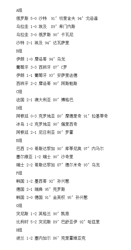 提前关电视的球迷又错过了两个进球 比如揭幕战俄罗斯爆锤沙特,有的球迷本以为3-0就收工了,结果提前关掉电视,转天一看比分又多了俩进球! 此外还有一个数据更为夸张,80分钟后进球并且决定胜负的比赛有11场,占比25%!换句话说,可能每看四场球就能看到一场绝杀,几乎一天一场,实在是太刺激了! 本届杯赛80分钟后出现进球的场次,见下表:
