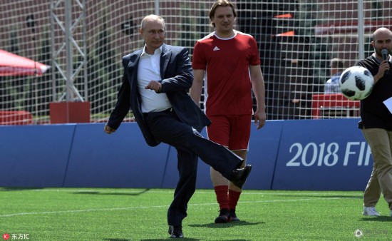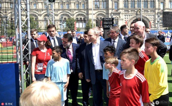 腾讯体育讯 当地时间6月28日,俄罗斯总统普京造访位于莫斯科红场的2018年世界杯主题公园。活动期间,俄罗斯总统普京还来到场地上与孩子们过招,大秀脚法。