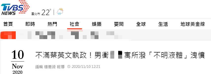原标题:“担心解放军真打来”,男子把“不明液体”泼向蔡英文家! 因不满蔡英文执政,台湾一男子向蔡英文寓所泼洒“不明液体”泄愤 据台湾TVBS新闻网11月10日报道,台湾一名52岁男子9日上午在台当局领导人蔡英文所居住的永和寓所外泼洒不明液体,随即逃离现场,台湾警方接到报案后立即追缉嫌犯,今日(10日)凌晨将其逮捕归案,男子称是因不满蔡英文执政,担心解放军真的打来台湾,才会以此方式泄愤。 ![]() 报道称,永和寓所社区主委发现大楼外被泼洒不明液体后报案,由于该处为蔡英文寓所,警方立即调阅监控器追查,发现52岁的马姓男子10月就曾出现在该社区外,疑似是事先勘查地形,又在其个人脸书中,发现有反民进党当局的言论,因此循线找到马姓男子位于永和区文化路的住所。 ![]() 10日凌晨,台湾警方将马姓男子带走调查。该男子供称,系因不满蔡英文执政不利,两岸关系紧张,担心解放军“攻打”台湾,才会采取此举泄愤。 台湾“三立新闻网”称,初步了解,该男子所泼洒的液体疑似为水或咖啡等。由于该男子精神状况不稳定,警方预计先行将他强制就医,后续再依恐吓危害安全罪侦办。 另据中时新闻网报道,针对这起事件,蔡英文办公室发言人张惇涵10日称,已在第一时间通过警方掌握状况。目前该名男子已由警方拘捕,后续并交由警方侦办。 来源:环球网/小尹 |