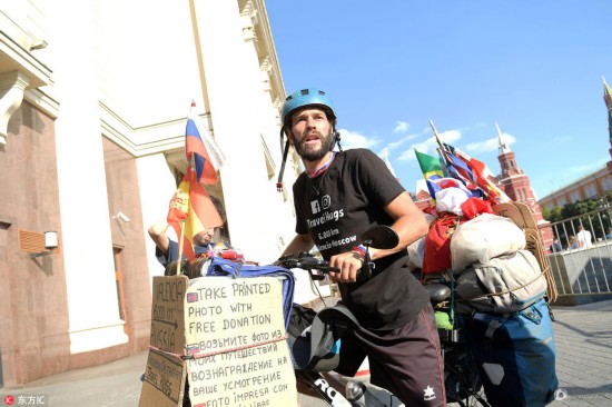 腾讯体育讯 小组赛刚刚结束,来自西班牙圣地亚哥的球迷骑行6000多公里抵达俄罗斯,他正好可以赶上看西班牙的淘汰赛