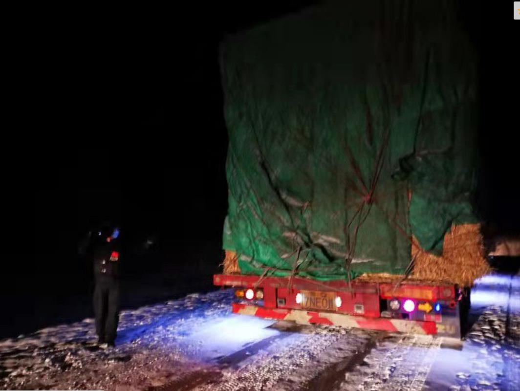 当日凌晨1时许,白石峰边境派出所民警在夜间巡逻过程中发现一辆满载麦草的半挂货车因导航路线错误,误入新疆昭苏县昭苏镇白石峰社区大洪纳海水库项目施工封闭路段,此路段位于白石峰山区,道路积雪、狭窄且崎岖,半挂货车体积较大而被困无法驶出,因此处手机通讯无信号而无法呼叫救援,派出所民警夜间车辆巡逻时将其发现,经了解情况后,民警冒着零下20度的严寒及大风主动帮其指挥倒车,经过两个多小时的不懈努力,最终将被困车辆成功救出。事后被救助车主阿某对民警提供帮助表示衷心感谢,并表示:“多亏了你们及时发现并给予帮助,为我解决了困难,你们是人民的好警察!”