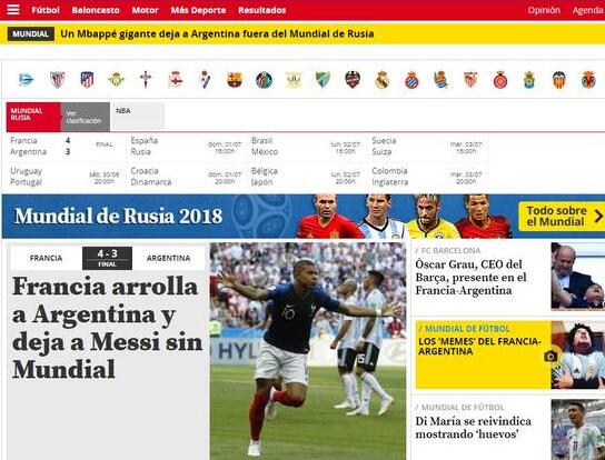 梅西梦碎 世界杯1/8决赛,阿根廷3-4不敌法国,惨遭淘汰。梅西又一次世界杯梦碎,潘帕斯雄鹰的梦想也终结了。各路媒体赛后都对本场比赛做了点评,梅西的表现还是引来一些争议。 《马卡报》批评了梅西的表现,称:“当阿根廷最需要梅西的时候,他又一次消失了。”此外他们还关注了姆巴佩的表现,称此役‘姆巴佩碾压了梅西。’ 《世界体育报》打出了“法国横扫阿根廷,让梅西没有世界杯”的标题。 《每日邮报》也是一样的观点称:“梅西的世界杯淘汰赛球荒还在继续,当阿根廷陷入彻底的混乱,他无法承担起一切。如今他面临着永远无法获得世界杯的尴尬。” 媒体都对阿根廷出局有些遗憾 阿根廷TYC体育的标题是“梦想结束”。 阿根廷《奥莱报》的标题是“梦想变成噩梦。” 阿根廷《号角报》的标题是“阿根廷遭法国打击淘汰,留下可悲形象。” 法国《队报》打出了“非常好”的标题。显然,法国队的表现让本国媒体充满信心。 《法国足球》的标题是“姆巴佩表现令人不可置信,法国淘汰阿根廷晋级”。 《雅虎体育》撰文称:“梅西永远无法赢得世界杯了。” (塞尔吉奥) |