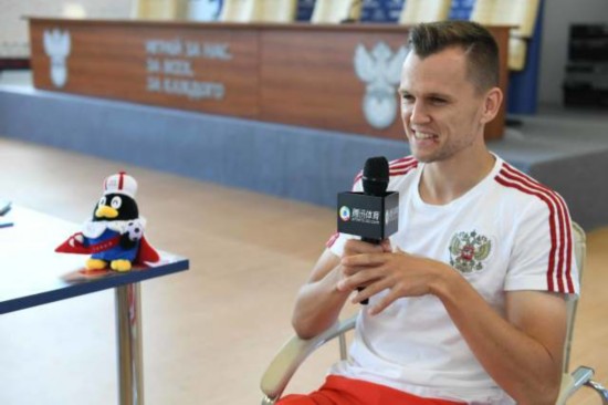 腾讯体育专访切里舍夫 撰文/王正坤 视频/赵航 作为世界杯小组赛攻入3球的当红球星,作为东道主俄罗斯队唯一在海外踢球的世界杯国脚,丹尼斯-切里舍夫,这个世界杯前在俄罗斯还默默无闻的前皇马球员,如今已经成为了战斗民族的新宠儿。 从边缘国脚到头号射手,从被伤病困扰的失意者到在世界杯舞台绽放的幸运儿,在切里舍夫成功的背后,有的是太多不为人知的心酸。但当他走过这一切,当他在世界杯上破门圆梦的时候,切里舍夫的名字在俄罗斯足球的历史上写下了全新的辉煌篇章。1/8决赛,面对自己最为熟悉的西班牙,面对自己曾经的队友,切里舍夫的故事还远未结束。 世界杯破门如同做梦 我们有能力击败西班牙 实际上在世界杯之前切里舍夫在俄罗斯国内的知名度相当之低,作为唯一在海外效力的俄罗斯国脚,他的状况并不被太多的俄罗斯人熟悉和关注。连续因伤错过两次大赛的他,这次能够入选或许是因为俄罗斯队友出现伤病,如果科科林等人在世界杯前还能保持健康的话,或许切里舍夫连踏上世界杯舞台的机会都没有。但幸运的是最终机会真的落在了切里舍夫面前,而且被他牢牢地抓住了。 如果不是米兰丘克在训练中的状态实在糟糕,如果不是扎戈耶夫在揭幕战22分钟就受伤下场,或许切里舍夫哪怕进入了23人大名单也难以得到上场的机会。但是机会总是眷顾着有准备的人,穿着一件跟前锋似乎毫不沾边的6号球衣,切里舍夫已经轰入了3粒进球并且帮助球队成功小组出线,对于切里舍夫来说,这一切是他在世界杯之前完全不敢想的。 腾讯体育:这是你人生中第一届大赛,还是本土世界杯,在你被选入最后23人大名单时,你的心情如何? 切里舍夫在世界杯小组赛中攻入3球 切里舍夫:能参加世界杯是我们所有人一生中的梦想,能在我们国家的土地上比赛是一种非常大的荣誉和幸福,我们非常满意,我希望整个国家都享受我们的比赛。我们还想继续走下去,走得更远。 腾讯体育:之前有没有想到过,自己在本土世界杯上能有如此出色的表现? 切里舍夫:没有,从来没想过,做梦都没想过。虽然我是足球运动员,但从来没想过在这次世界杯上能有这么出色的表现。像做梦一样,但我们不能就此满足,面对西班牙,我们还要继续走下去。对我们来说,这场比赛是一场非常艰难但又很重要的比赛 腾讯体育:你因为第一场比赛的出色表现拿到了第二场的首发机会,而第二场你也拿到了最佳球员,你怎么评价自己在世界杯上的发挥? 切里舍夫:当我坐在替补席上的时候我就在想,如果能让我踢一分钟都好。但是我没想到我竟然真的能上场踢比赛,而且进了两个球。第二场比赛我也做到了完美,完成了教练所要求的一切。我觉得球队准备的很充分,踢得也很好,感谢上帝,我们赢了比赛。 腾讯体育:你已经进了三个球,有没有争夺金靴的想法? 切里舍夫:我不应该去想这个问题,而是应该想如何帮助球队走得更远,虽然我已经进了3个球,但还是希望能更多的帮助球队。如果接下来的赛中我的队友能进很多的球,我也会很开心,俄罗斯加油。 1/8决赛,俄罗斯队就将面对西班牙队,对于西班牙这个已经生活了超过20年的地方,切里舍夫有着特别的感情。他熟悉那里的一切,而这其中当然包括斗牛士军团的23人,虽然实力上有差距,但是在切里舍夫看来,俄罗斯队完全有再进一步的希望。 切里舍夫备战1/8决赛 腾讯体育:你长年在西甲联赛踢球,对阵西班牙的比赛,你有给教练和队友什么建议吗? 切里舍夫:西班牙没有秘密,他们是一个非常强大的球队,我们要踢出自己的特点和水平。虽然对我们来说很难,但是我们有自己的武器,可以取得进球,并且奉献一场精彩的比赛。我们不会过早的放弃,我们要坚持到比赛最后。 戈洛文有去五大联赛的能力 看好他的未来 切里舍夫在5岁的时候就已经来到了西班牙,之后的生活和成长也都是在伊比利亚半岛的土地上,对于俄罗斯这个国家,切里舍夫甚至可能还没有对于西班牙熟悉。几年前刚刚入选国家队的时候,切里舍夫甚至用俄语和队友交流都成问题,但是在他看来,足球才是队员之间最好的交流语言。 从某种程度上讲,是因为扎戈耶夫的受伤才让切里舍夫获得了在世界杯上闪耀的机会,但是对于这位和他一样因伤病而陷入低潮的天才球员,切里舍夫送上的是满满的祝福。对于同样大放异彩的小将戈洛文,切里舍夫则像一个前辈一样给出了他的建议,但最终的落脚点仍然是为了俄罗斯队,为了他们身上共同的这件球衣。 腾讯体育:你是俄罗斯全队唯一在俄超之外踢球的球员,感觉你虽然没和国家队队友一起踢过球,但你们似乎有着天生默契,平日里和国家队队友联系多不多? 切里舍夫:对,我们经常聊天儿,足球是一门相通的语言,是一项全世界的运动,大家都用脚踢,需要快速思考,而且需要配合默契。我们是个很好的球队,有很好的球员,我和队友经常联系,大家都是很好的伙伴,我从来没觉得自己很特殊,我们之间的关系很不错。 切里舍夫与腾讯记者合影 腾讯体育:怎么评价你的主教练切尔切索夫?平时他对球员是怎么样的? 切里舍夫:我们经常会和他交流,他对我们非常严格,不给我们一分钟的喘息时间,但这也是正常的,毕竟现在是世界杯。如果我们稍微一放松,我们就该回家了。他经常给我们一些指导,为了让球队能够进步,有统一的目标,让我们不要放松。我们赢了前两场比