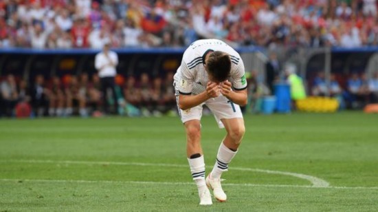拉莫斯庆祝进球 北京时间7月1日22:00(莫斯科当地时间17:00),2018年世界杯1/8决赛第三场比赛在卢日尼基球场展开角逐,西班牙4比5不敌俄罗斯,伊格纳舍维奇自摆乌龙,久巴点球扳平。双方120分钟内1-1战平。点球大战,西班牙3-4落败出局。 俄罗斯此前6次对阵西班牙仅2平4负未尝胜绩,其中双方去年11月曾在圣彼得堡3比3战平。西班牙小组赛1胜2平夺头名出线,但此前4次在大赛中对阵东道主从未取胜,纳乔、科凯和阿森西奥轮换出场。俄罗斯在最后一场小组赛失望落败,库兹亚耶夫、戈洛文、日尔科夫和费尔南德斯轮换出场。 俄罗斯开场后压缩防守空间坚持稳守反击,西班牙则耐心控球寻找机会。西班牙第11分钟取得领先,日尔科夫对纳乔犯规,阿森西奥右路任意球传中,伊格纳舍维奇背对来球防守拉莫斯,皮球打在俄罗斯后卫腿上偏转入网。38岁352天的伊格纳舍维奇成为世界杯中打入乌龙球最年长球员。这也是俄罗斯第4次定位球失分。 俄罗斯自摆乌龙 库兹亚耶夫传球,佐布林右路25码处抽射离谱偏出。俄罗斯展开反攻,但东道主的边路传中缺乏实质威胁。领先的西班牙放缓节奏,他们试图用传控撕开俄罗斯的防守空间。佐布林传球,戈洛文左路禁区边缘弧线球射门偏出右侧立柱。 戈洛文弧线球射偏 皮克手球送点 俄罗斯第41分钟扳平,久巴角球混战中头球攻门打在皮克伸起的手上,裁判判罚点球,久巴亲自主罚命中,1-1。纳乔直传,迭戈-科斯塔小禁区右侧射门被出击的阿金费耶夫封堵,皮球滑门而出。随后伊斯科左路传中,迭戈-科斯塔头球攻门被阿金费耶夫没收。 久巴扳平 格拉纳特下半场替换日尔科夫出场。西班牙控球提速加强攻势,阿森西奥禁区右侧传中远点,阿尔巴挡射被没收。科凯右路任意球传中,迭戈-科斯塔头球破门。伊斯科小禁区左侧的射门也被伊格纳舍维奇挡出近角。俄罗斯换上切里舍夫加强反击锐度,斯莫洛夫换下进球功臣久巴。 切里舍夫替补出场 伊涅斯塔换下席尔瓦,这是他第14次在世界杯出场,也是首次替补出场。卡瓦哈尔替换受伤的纳乔出场。西班牙控球在紧逼下多次失误,这也影响了他们的进攻效率。迭戈-科斯塔被阿斯帕斯换下。第85分钟,伊涅斯塔禁区边缘外半凌空抽射被阿金费耶夫勉强扑出,阿斯帕斯小角度补射再射又被扑出。随后斯莫洛夫禁区左侧弧线球射门偏出远角。 阿金费耶夫连续救险 俄罗斯此前在世界杯两次进入加时赛均败北。这是西班牙第7次进入加时赛。阿斯帕斯禁区左侧下底传中,卡瓦哈尔小禁区边缘铲射被对方抢先解围。叶罗欣换下库兹亚耶夫,这是世界杯历史上首次第4换人。科凯远射高出,阿森西奥禁区前射门正入门将下怀。罗德里戈替补出场。科凯左路任意球传中,皮克12码处头球攻门被没收。 大雨在卢日尼基球场落下。第109分钟,罗德里戈强突禁区右侧小角度射门被阿金费耶夫勉强扑出,卡瓦哈尔12码处再射被封堵。第114分钟,科凯左路任意球传入禁区,皮克在禁区内被伊格纳舍维奇拉拽,西班牙球员强烈抗议,裁判在征询视频裁判后拒绝判罚点球。加时赛补时,罗德里戈禁区弧边缘转身抽射被没收。 这是本届赛事的首场点球大战。首轮,伊涅斯塔冷静射入,阿金费耶夫判断错误,斯莫洛夫也大力射入,尽管德赫亚判断正确并扑挡到皮球,1-1;次轮,皮克低射左下死角击中立柱内侧入网,伊格纳舍维奇则骗过德赫亚射入右下角,2-2;第3轮,科凯主罚角度太正,阿金费耶夫冷静扑出,科凯拉起球衣掩面,戈洛文大力低射入网,2-3;第4轮,拉莫斯通过节奏变化骗过门将射入,切里舍夫劲射中路命中,3-4;第5轮,伊涅斯塔背对球门不敢直视,阿斯帕斯射门被阿金费耶夫用腿挡出。 西班牙(4-2-3-1):1-德赫亚;4-纳乔(70\',2-卡瓦哈尔),3-皮克,15-拉莫斯,18-阿尔巴;5-布斯克茨,8-科凯;21-席尔瓦(67\',6-伊涅斯塔),22-伊斯科,20-阿森西奥(104\',9-罗德里戈);19-迭戈-科斯塔(80\',17-阿斯帕斯) 俄罗斯(5-4-1):1-阿金费耶夫;2-费尔南德斯,13-库德里亚绍夫,3-库捷波夫,4-伊格纳舍维奇,18-日尔科夫(46\',14-格拉纳特);19-塞梅多夫(61\',6-切里舍夫),7-库兹亚耶夫(97\',21-叶罗欣),17-戈洛文,11-佐布林;22-久巴(65\',10-斯莫洛夫) |