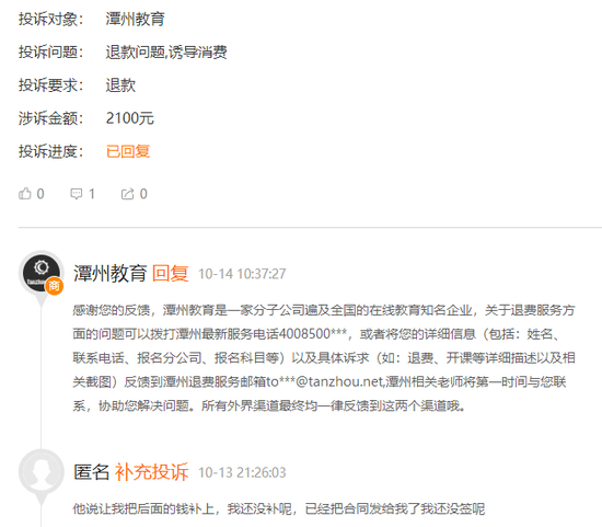 近日,黑猫投诉河北站收到网友投诉潭州教育:我加入了他们的QQ群听过几次课,他就联系我问我是否学习,他就以有优惠和工作薪资诱惑我,让我交钱,没禁住诱惑就用花呗分期交了点钱,但是后来有个人原因想暂时退款,他就和我说需要有很多流程,还和我说课程很好不满意之后可以退。 目前商家已经回复,后续进展,我们将持续关注。投诉详情:https://hebei.tousu.sina.com.cn/complaint/view/17347915598/ 黑猫投诉河北站,守护河北人的消费权益,本地投诉入口链接:https://hebei.tousu.sina.com.cn/ ![]() ![]()