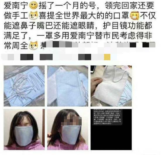 疫情时期, 口罩成了生活的必需品~ 什么是大户人家? 大概是拥有很多口罩的朋友~ 那最开心的时刻是什么? 大概是被通知口罩中签的时候! 但是最近, 一些南宁的小伙伴对自己摇号中号买到的口罩 有点不理解。。。 ![]() ![]() 市民:“组装一个口罩要半个小时” 2020年3月3日至8日,“爱南宁APP”上的口罩预约服务每日摇号增加了普通无纺布口罩(民用口罩)2万份,每份10个。 南宁市民曾先生,3月3日收到“爱南宁APP”短信告知他摇中号,3月4日他到指定药店购买到了10个普通无纺布口罩。 买到口罩后,曾先生有些不知所措,这10个口罩并不能直接使用,耳挂绳、鼻梁筋都需要自己动手DIY组装。“对我一个大男人来说,组装口罩难度挺大的,组装第一个口罩花了30分钟,首先要把穿孔逐一切开,才能穿绳,研究了很久才组装好。” ![]() ![]() ![]() ![]() 曾先生供图 组装完口罩后,试戴的时觉得很不适。 他说:“这次领到的口罩比之前买到的医用口罩大很多,也没褶皱,可以从眼睛蒙到下巴,并且感觉很漏风,不够贴合。” 预约摇号时请看清口罩类型 针对市民们的疑惑,记者联系了“爱南宁APP”的客服主管,他介绍,目前的预约摇号系统中,已经写清楚民用口罩和医用口罩,分别要去哪些药店预约,在通知市民的短信中,也是写清楚了能购买的口罩类型,不存在预约医用口罩,却购买到民用口罩的情况。 “爱南宁APP”的客服主管进一步说明:“原先只有医用口罩,后面加了民用口罩之后,在系统上做了一些增加和补充,一些市民没有看清楚说明的情况下,就直接预约了,所以会产生一些误会,我们会做好解释工作,也请大家预约的时候要看清楚细则和说明。如果市民不会组装,可以上网查询民用口罩组装视频,学习一下。” ![]() 民用口罩大部分人群都适合佩戴 据了解,为了缓解群众买口罩难的问题,南宁市通过柳药股份投放一批民用口罩(普通无纺布口罩),此次投放口罩数量达120万个,自3月3日起,分6批次进行发放完成,每天20万个。 ![]() ![]() “爱南宁APP”的客服主管表示:“口罩都是正规厂家有资质生产的合格产品,民用口罩在一般情况下大部分人群都能适用(非医务人员),如上班、日常逛街买菜等,能阻挡有害的气体、气味、飞沫。” 来源:930老友记 记者:周娜 |