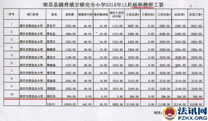 ▲图为:荣昌区政府责成区教委作出的不予受理的告知书 作为一名小学一级教师,在三尺讲台上,连续任教36年。2001年至今,每月工资只有384元,不如当地一个五保老人。五保老人的待遇,每人每月生活补助是754元。  ▲图为:五保老人生活补助明细表 声明: 胡天凤以“人民教师”身份撰写这篇稿件,目的是为了公开事实真相,让重庆市荣昌区教育委员会等相关部门的官老爷们,知晓胡天凤在教育教学岗位上的36年,是怎么在忠于党和人民的教育事业,落得的下场是“待遇不如五保老人”。 文章由胡天凤发表,如果内容不属实,自愿承担一切法律责任。 欢迎转载,热评。