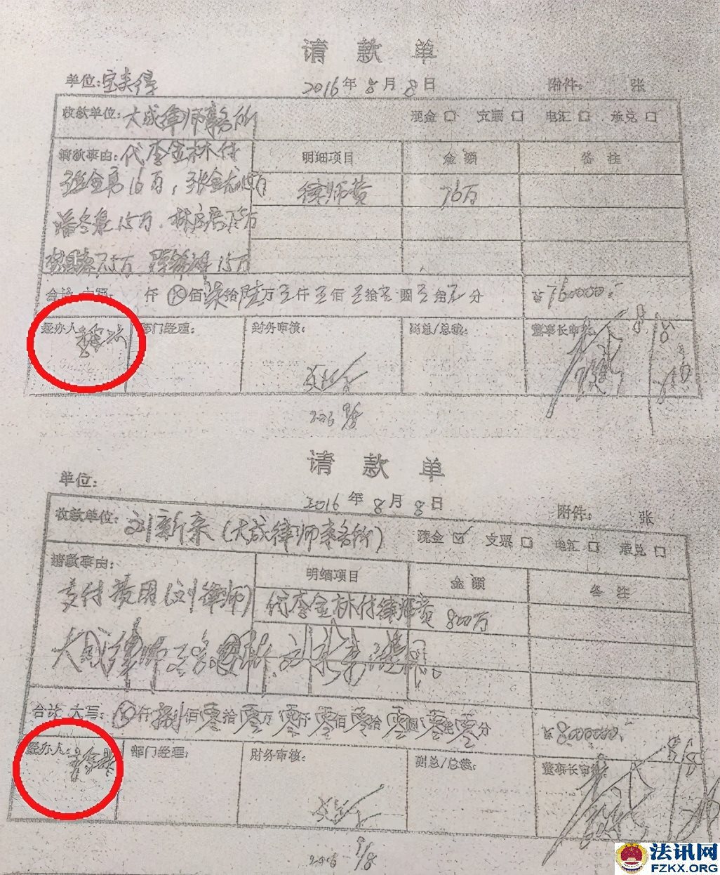 法讯君从多位莆田商人中获悉,因涉嫌虚假诉讼,莆田人李燕香、李金林被北京市公安局丰台分局刑事拘留。 李金林是莆田人,在其堂弟李文新控制的北京闽商担保投资有限公司、北京豪威特供热设备有限公司等公司打工,干了近30年。莆田黄璋宝特大集资案被列入2016年十大非法集资大案,涉案金额49亿余元,涉及200余家企业,受害者多为福建莆田人,数目超过1000人,该案致6人死亡。内心受到煎熬而良心发现的李金林于2019年12月12日,愤而向北京市政法机关领导检举揭发李文新重大犯罪行为和线索,其中第一条就是策划制造标的13667万元的虚假诉讼。该案件用来参与李金林执行众和股份在北京二中院12100多万元执行案款的分配,致使五名莆商的债权得不到全部执行,少执行案款4000多万元。 李燕香是李文新的妹妹,在李文新多家公司里负责财务。 北京市中级人民法院(2015)二中民(商)初字第06520号民事调解书显示,李燕香与李金林共同确认:截至二0一五年七月十五日,李金林尚欠李燕香借款本金一亿一千七百七十四万元、利息三千四百八十二万九千四百五十四元,共计一亿三千二百五十六万九千四百五十四元。 笔迹鉴定这里的李金林签字非李金林书写 检举信里,李金林述说了虚假诉讼的情况。 2015年5月的一天,李文新跟我说:“我安排(李燕香)到北京二中院起诉你,参与众和股份执行案款的分配,将钱 拿回来我们一起用。我们是亲戚,应该一致对外,我让我妹妹(李燕香)给你写个条子,说明这份起诉不是真的,你不会有任何责任,我不会对你怎么样的,而且对外-律宣称只还本金,还不起利息。”我信以为真,他就欺骗指使我书写一式三份授权委托书,转抄-份“承诺书”。同时还说,他会与北京大成律师事务所刘某某律师商量好如何操作,其他的事不要我管。可事到如今,李文新一直推迟没有让李燕香给我写条子说明。也没想到因为这次虚假诉讼,变成了实实在在我欠他妹妹(李燕香)13667万元债务的惊天噩梦。 2016年6月,李燕香拿到执行案款7655万元后,北京大成律所刘某某律师与李文新商议,让我配合刘某某律师,设法让松发利盛建材销售中心、林国森、林启君、张金龙、陈锦明等债权人达到只还本金还不起利息的结果,即执行不到4000多万元的利息案款,李文新答应给予刘某某律师30%的回报,即李文新应给1200万元,前期先支付给刘新来800万元。于是,李文新指令李燕香先提取600万元现金给刘某某律师,又由李燕香从其账户转到大成律师事务所140万元(大成所开具发票),再从李文新儿媳郑梅妹处已经结算给我的2012年业务提成60万元,也一同拿来凑数。 为了使该虚假诉讼更真实,李文新将上述共计800万元给刘某某的好处费,加上松发利盛建材销售中心、林国森、林启君、张金龙、陈锦明等人由李文新支付的应诉律师费用76万元,共计876万元,让我书写一个欠条。 从这以后,我天天向李文新要证明该起假诉讼的证明条子,他以北京二中院执行众和股份的案款还没有全部拿到手为由,一拖再拖,一直不给我写条子。 我质问李文新:“我已经按照你的吩咐做到位了,该写的写了,该抄的抄了,你的目的达到了,为什么你一拖再拖至今仍不给我写条子?你不该这样害我,这样的话,你的名声也不好!”他说:“你以前不是说要自杀吗?到现在不是还没有自杀吗?”他还扬言,我钱没有他多,社会关系没有他硬...... 该起虚假诉讼的被告律师费用由原告支付,这是开具的800万元部分发票。据了解,该诉讼的李金林的800多万元律师费其实是由李文新给付的。 李文新儿媳、妹妹及宝美得公司的说明,证明是受李文新委托。员工是给老板打工、老板指到那里员工打到那里,员工犯错被依法刑拘、那么得利的老板逍遥法外? 检举信发出后,今年1月15日,涉案人李燕香和李金林被北京市公安局丰台分局刑事拘留,目前案件还在进一步审理中。(李海波)