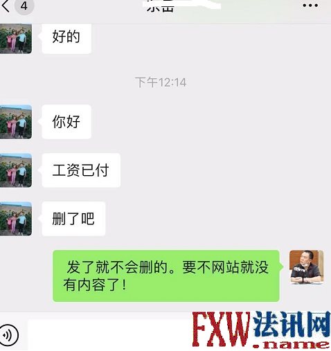 前天(2月2日)法讯网发布的《甘肃古浪:患病村民何时才能拿到拖欠的血汗钱》后,引起强烈反响。当事人已经在昨天(2月3日)领到了拖欠的工资。 2月3日12时许,当事人王泰山发来信息:工资已付。删了吧。法讯君答复:发了就不会删的,要不网站就没有内容了。 当事人发来的领条和微信收款截图。并表示:他们全在这。 法讯君为患病村民王泰山感到高兴,当即为此发了朋友圈,特说:不好意思,文章是不能删除的。七台河人民医院当时发了解决问题后当事人也是要求删除。这不可能! 王泰山再次发来信息:刚把钱发了。谢谢。删了吧。法讯君答复:不能删的,可以写个后续说工资已发,见朋友圈。他便发视频通话给我,吃饭的法讯君不予理睬。 之后自称古浪县人社局的徐述才添加了法讯君的微信。 饭后法讯君出去办事,接到了显示甘肃武威市的电话,对方言语不清。最后听明白说是王泰山,还是要求删帖。我答复说不可能。然后一普通话的口音传来,自称是古浪县人社局的工作人员。他要求删帖。法讯君答复不可能。对方说对王泰山也不好。法讯君说发了朋友圈说了工资已经领到。对方说不够,法讯君答复明天发个后续说工资已经领取。对方说今天写了发。法讯君答复不能。而后对方几次说今天写了发。法讯君生气了:你说今天就今天啊?我为什么听你的?我在外办事呢!听此,对方才说那明天早点吧。 办事回家,才发现微信里那个古浪县人社局的徐述才发来语音电话。 而据了解,现场去的有古浪县公安的、劳动监察大队的、社保局的、土门镇的,龙腾公司的人。 古浪公安去做什么呢?他们拿的个执法仪,问王泰山怎么联系的法讯君。并说:后果想没想,舆论性多强。还问收费了没有?给了多少钱?答复说没有收费,确确实实没有收费。他们说不可能免费为你做的,是不是事成之后付费?答复是说没有,让他们看了聊天记录,说是没收过费用。之后的重点就是让删帖。 这么多部门去村委,那处罚了隆腾公司没有?王泰山说没有。法讯君微信询问古浪人社局的徐述才,没有回应。 下午六时许,患病村民王泰山朋友圈发布消息,感谢古浪县诸多人士帮他要回了血汗钱。 对此,法讯君要说的是:古浪县对舆论的重视值得肯定,及时处理解决问题也值得赞扬。唯一不足的是不应该大动干戈地要求删帖,这不画蛇添足吗?假如法讯君和你们的思维同步,收取了弱势群体的王泰山的钱而写稿发布,岂不是牢狱加身了? 看来,为弱势群体发声,真他妈的难啊!(李堂平) |