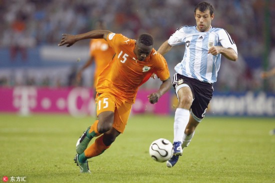 当地时间2018年6月30日,俄罗斯喀山,2018世界杯1/8决赛,法国4-3阿根廷。赛后,阿根廷球员马斯切拉诺宣布退出国家队。2006-2018,马斯切拉诺4次参加世界杯,出战20场;国家队层面,更是创纪录的为国征战147场。“是时候说再见了。从现在起,我是一名阿根廷球迷了。”,愿未来的日子,小马哥一切都好。图为当地时间2006年6月16日,德国盖尔森基兴,2006年德国世界杯小组赛,阿根廷6-0塞黑。