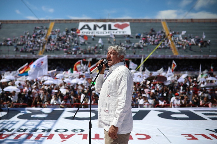奥夫拉多尔在竞选集会上讲话。(新华社/美联) 投票前,他面对几百名媒体记者说:“我们带给你真正变革的可能性。” 打破:两党交替的轮回 这是64岁的奥夫拉多尔第三次竞选墨西哥总统。他代表的竞选联盟叫“我们一起创造历史”。