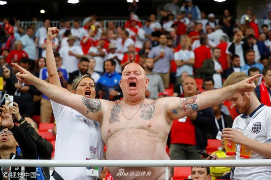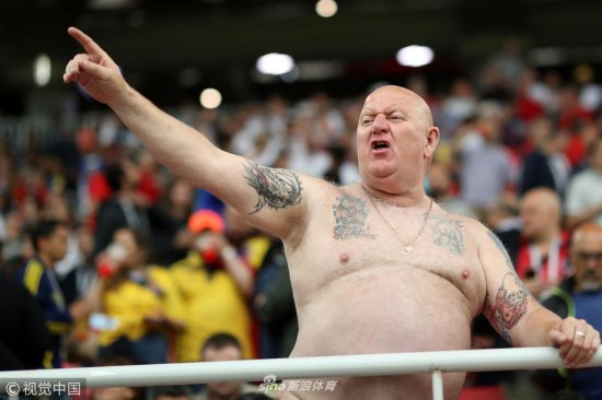 北京时间7月4日,世界杯1/8决赛最后一场比赛,英格兰vs哥伦比亚,赛前,一位看台上的英格兰球迷十分引人眼球。